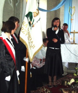 | Katarzyna Stępień wygłasza oracje na cześć księdza Jana Ziei. | |